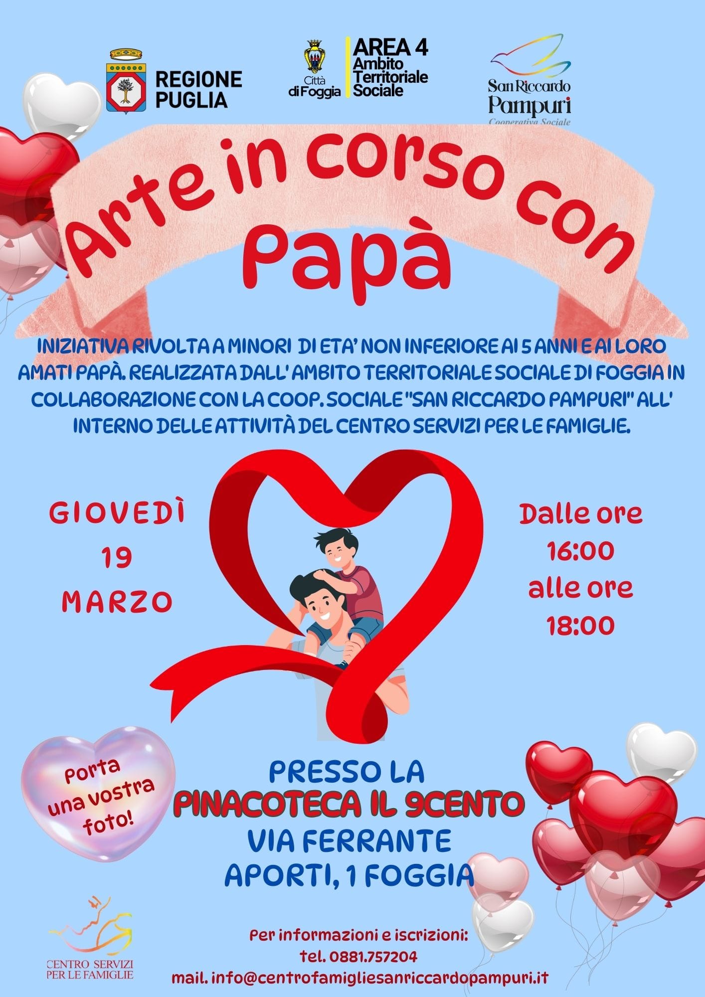 Ente gestore del Centro Servizi per le Famiglie dell’Ambito Territoriale di San Severo, nasce nel 1997, promuove interventi a favore di bambini, famiglie, anziani, diversamente abili, donne vittime di violenza e altri soggetti che versano in condizioni di fragilità. Già nel 2001 apre l’omonimo Centro famiglie sito nel Comune di Foggia, prima struttura nella provincia ad essere accreditata presso la Regione Puglia per l’esercizio di attività socio-assistenziali per minori e famiglie.